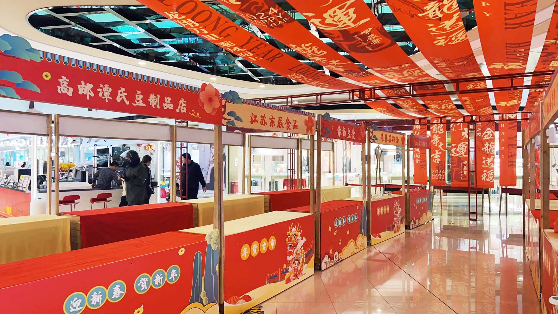 “龙重登场”“齐乐龙龙”……昨天,记者在蜀冈万达广场看到,扬州快乐生活精品展销年货“吉”市今天在这里开幕,同时将举办“好地方·好生活”年货节启动仪式。据了解,该活动由扬州市商务局主办。