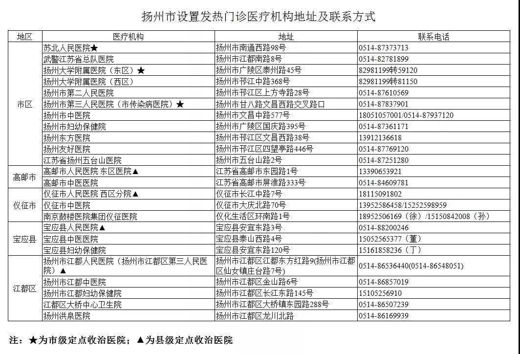 最新!江苏扬州市设置发热门诊医疗机构地址及联系方式。