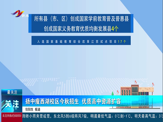 扬中瘦西湖校区今秋招生 优质高中资源扩容
